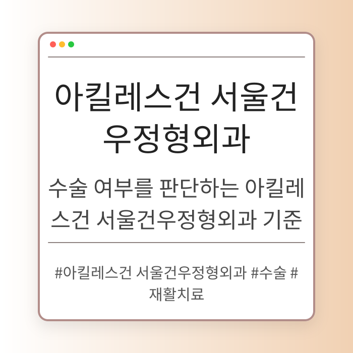 아킬레스건수술 여부를 판단하는 아킬레스건 서울건우정형외과 기준 서울건우정형외과 전체 내용 보기 ▼ 펼치기 아킬레스건 서울건우정형외과 손상 후 수술여부를 결정하는 기준은 여러 가지가 있다. 이를 통해 정확한 진단과 적절한 […]
